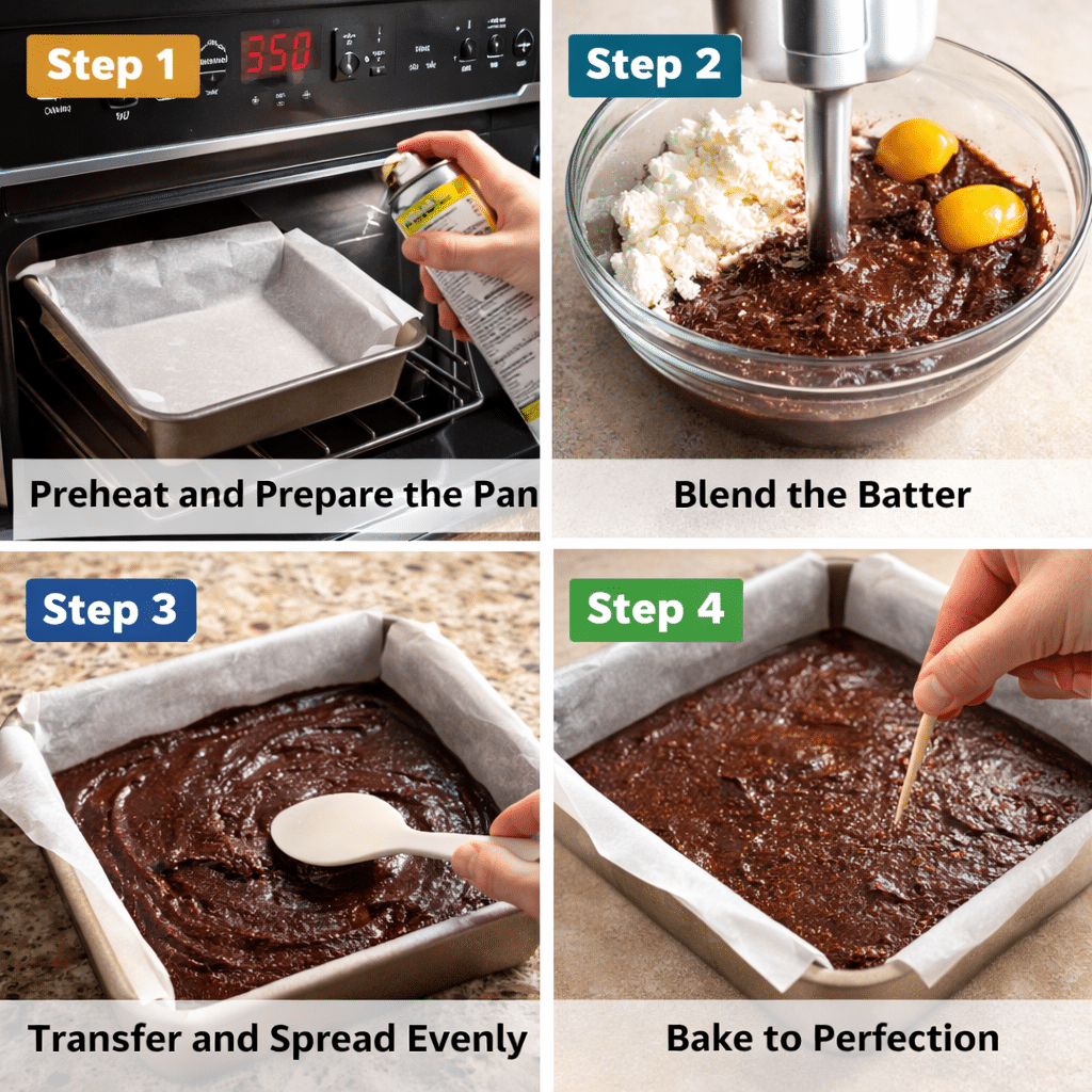 Blend until the mixture is completely smooth and creamy. This step is crucial. Cottage cheese naturally has curds, and blending ensures they fully break down, giving you that classic smooth brownie texture. If using a blender, scrape down the sides once or twice to ensure everything incorporates evenly.