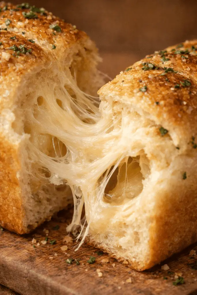 This bread is best enjoyed warm, when the cheese is fully melted.