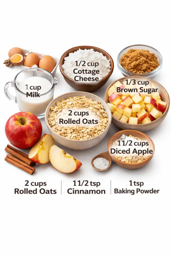 This recipe provides protein from eggs and cottage cheese, fiber from oats, and natural fruit sweetness from apples. It’s balanced and satisfying, making it a wholesome breakfast option.
