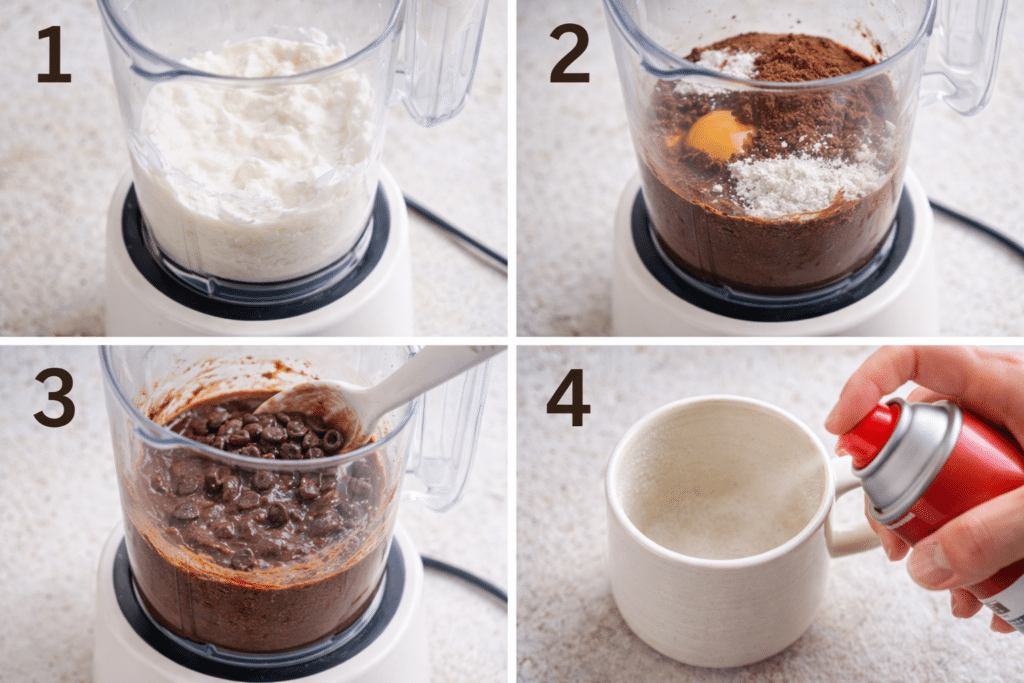 Start by blending the ½ cup cottage cheese until it is completely silky smooth. This step is absolutely crucial. Any lumps left behind will create an uneven, curdled texture in the final brownie. Blend until it looks creamy and glossy—almost like thick yogurt. Scrape down the sides if needed to ensure uniform smoothness.