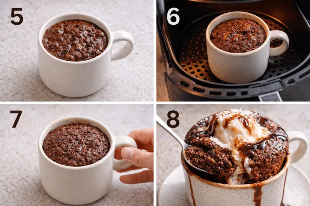 Choose an oven-safe ceramic mug or ramekin that fits comfortably in your air fryer basket.