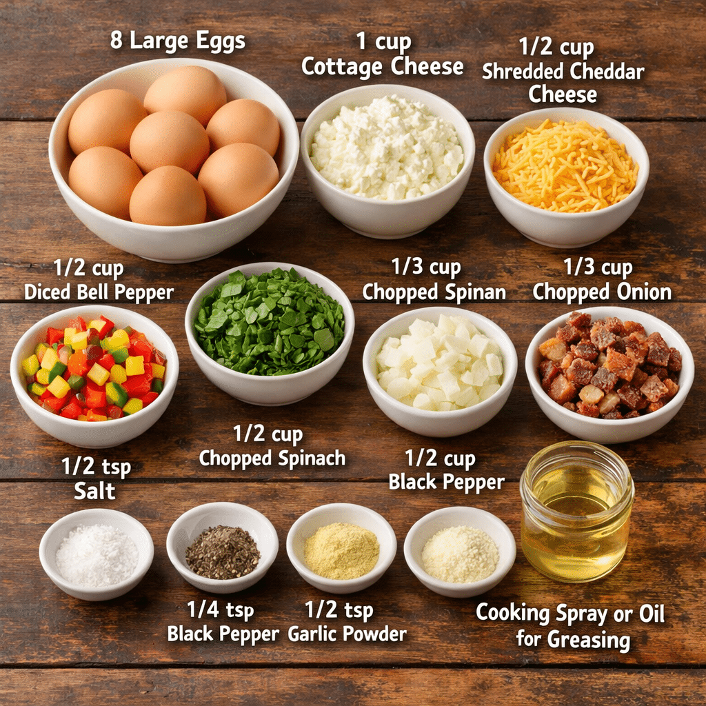 • 1 cup cottage cheese – Adds creaminess and keeps the muffins moist and tender.