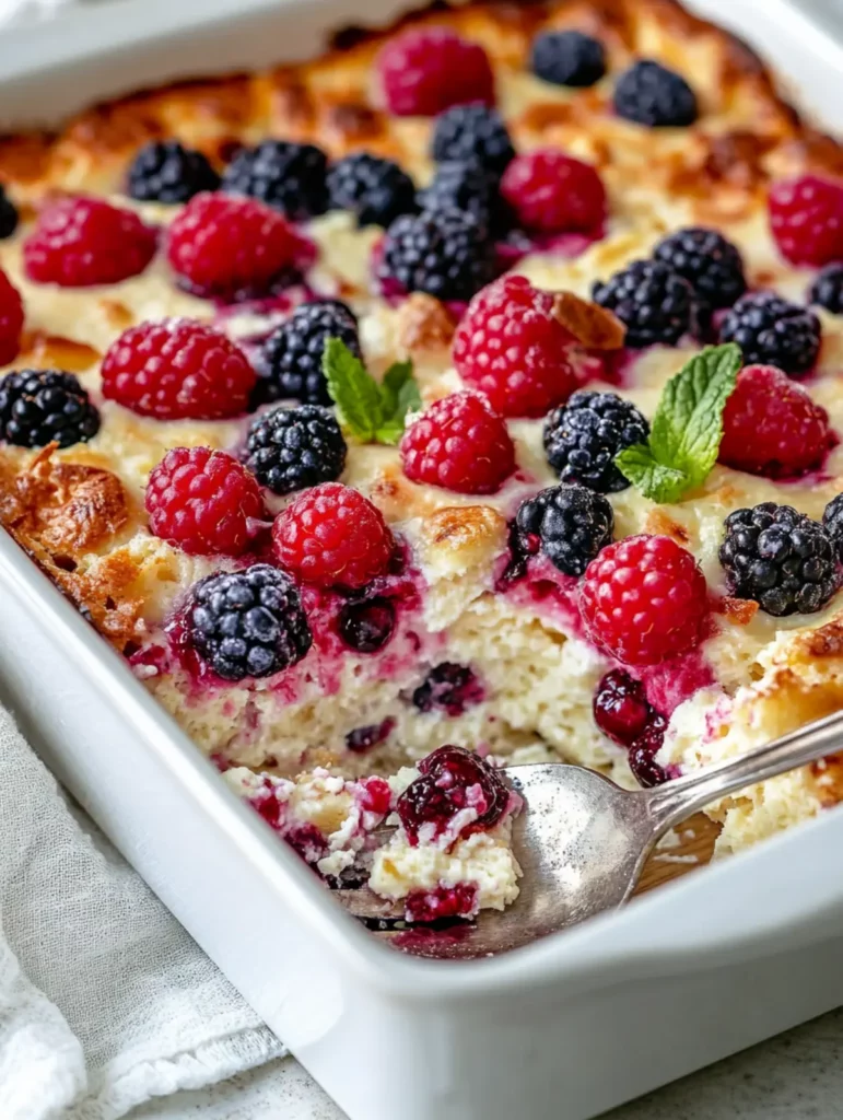 - Refrigerator Storage: Store leftovers in an airtight container for up to 3 days. The texture stays custardy, but berries may soften slightly—reheat gently in the oven or microwave to revive.
