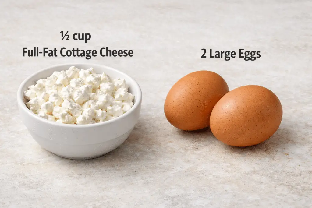 • ½ cup full-fat cottage cheese – Adds creaminess, moisture, and rich protein for structure.