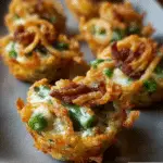 These little savory gems take everything people love about traditional green bean casserole—the tender green beans, creamy mushroom sauce, melted cheese, and crispy fried onions—and transform it into adorable, handheld bites. Each one is a perfect miniature portion with a crispy golden top and a soft, creamy center. They’re easy to pick up, easy to eat, and even easier to fall in love with.