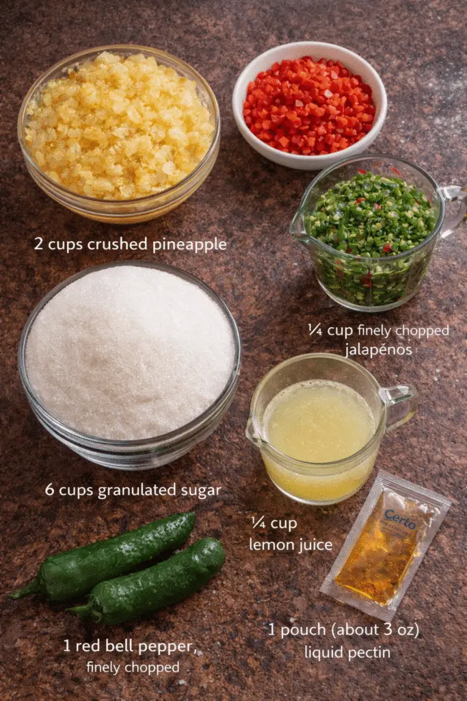 Start by preparing all your produce before turning on the heat. Peel and finely chop the pineapple into small, even pieces. The finer the chop, the smoother your jelly texture will be. If using crushed pineapple, ensure it’s evenly broken down without large chunks.