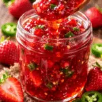 A sweet and spicy homemade jam bursting with fresh strawberries, honeyed depth, and a gentle jalapeño kick. Perfect for toast, cheese boards, or glazing savory dishes.