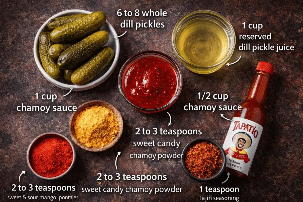 • 6 to 8 whole dill pickles – The crunchy base that absorbs all the bold flavors.